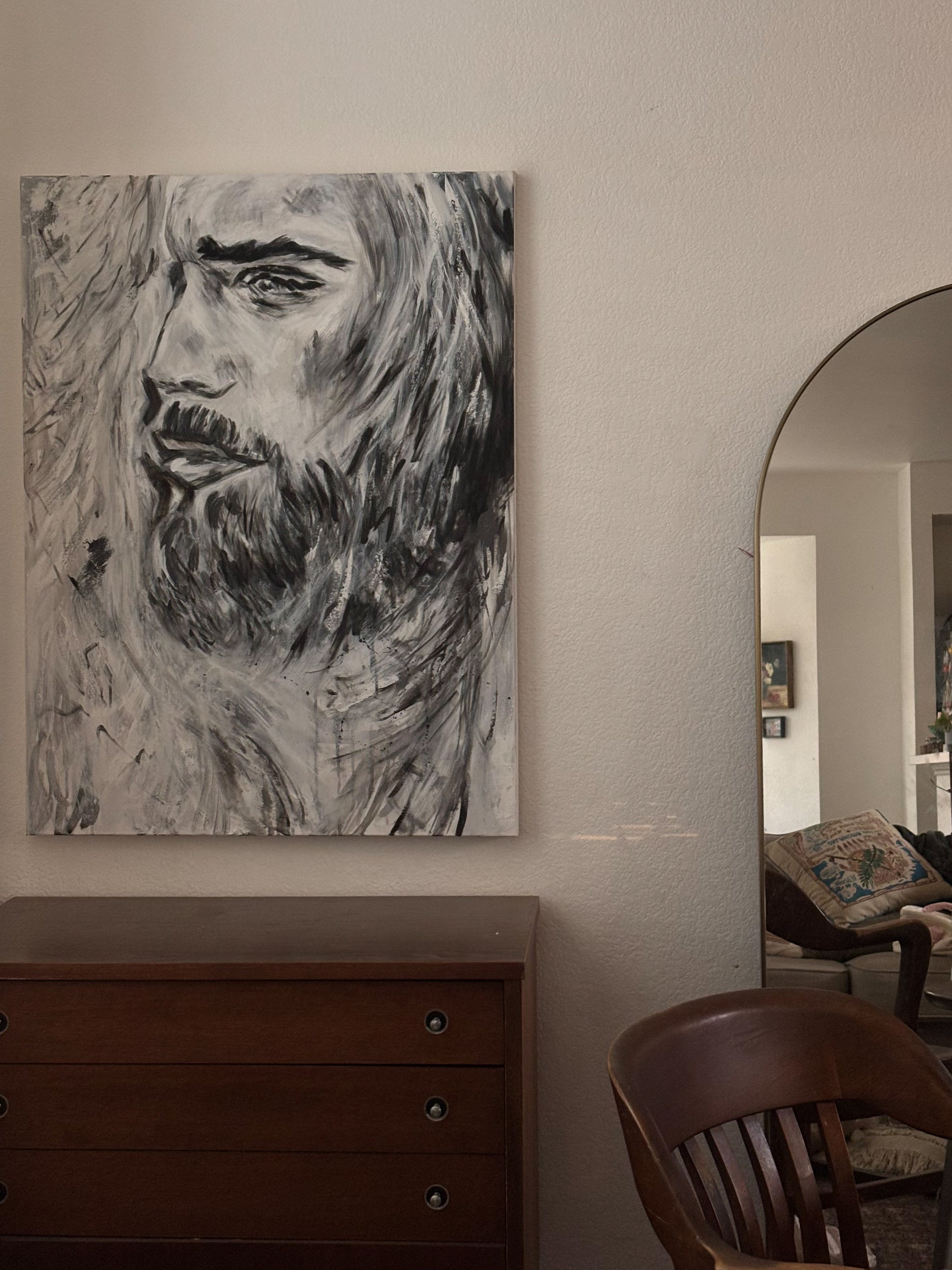 30x40 mixed media (acrylic and oil) abstract portrait of Jesus.